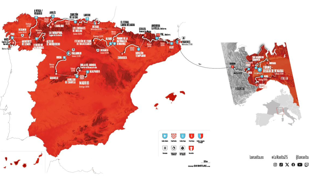 Guillen capitaliza sua capacidade de permanecer na esteira do Tour sem distorcer a Vuelta e, por outro, não esquece os Moloch de sua terra natal, que em 2025 estão na sombra dos Angliru com aqueles 13 quilômetros de subida a uma média de 9,7% para ajudar os ciclistas a digerir – por assim dizer – uns bons 1266 metros de desnível positivo, um Gólgota de "transição" para a penúltima etapa com a Bola del Mundo (18,5 km a uma média de 6% em 1110 metros de desnível) antes do desfile em Madri.